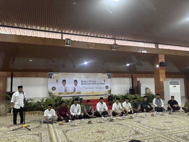 PALI,ZBS – Pemerintah Kabupaten PALI melalui Dinas Komunikasi dan Informatika (Diskominfo) menggelar buka puasa bersama dengan insan pers di Gouse House Bupati PALI, Senin (9/3/2026). Acara yang mengusung tema “Mempererat Silaturahmi di Bulan Penuh Berkah” ini dihadiri oleh Bupati PALI Asgianto, ST, Wakil Bupati Iwan Tuaji, SH, Forkopimda, Kepala OPD terkait, serta perwakilan organisasi media cetak, elektronik, dan online yang bertugas di Kabupaten PALI.