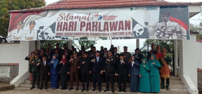 PALI, ZBS – Pemerintah Kabupaten Penukal Abab Lematang Ilir (PALI) melalui Dinas Sosial menggelar upacara peringatan Hari Pahlawan di halaman Kantor Bupati PALI Km 10, Senin (10/11/2025).